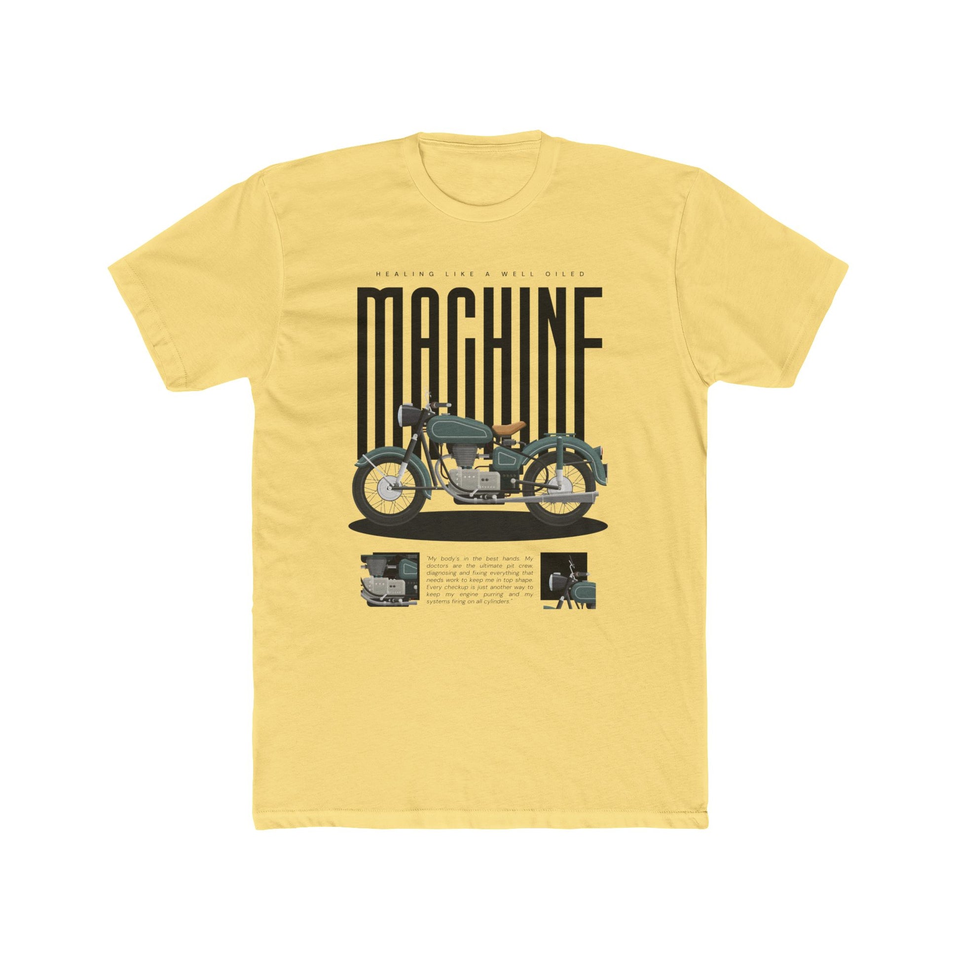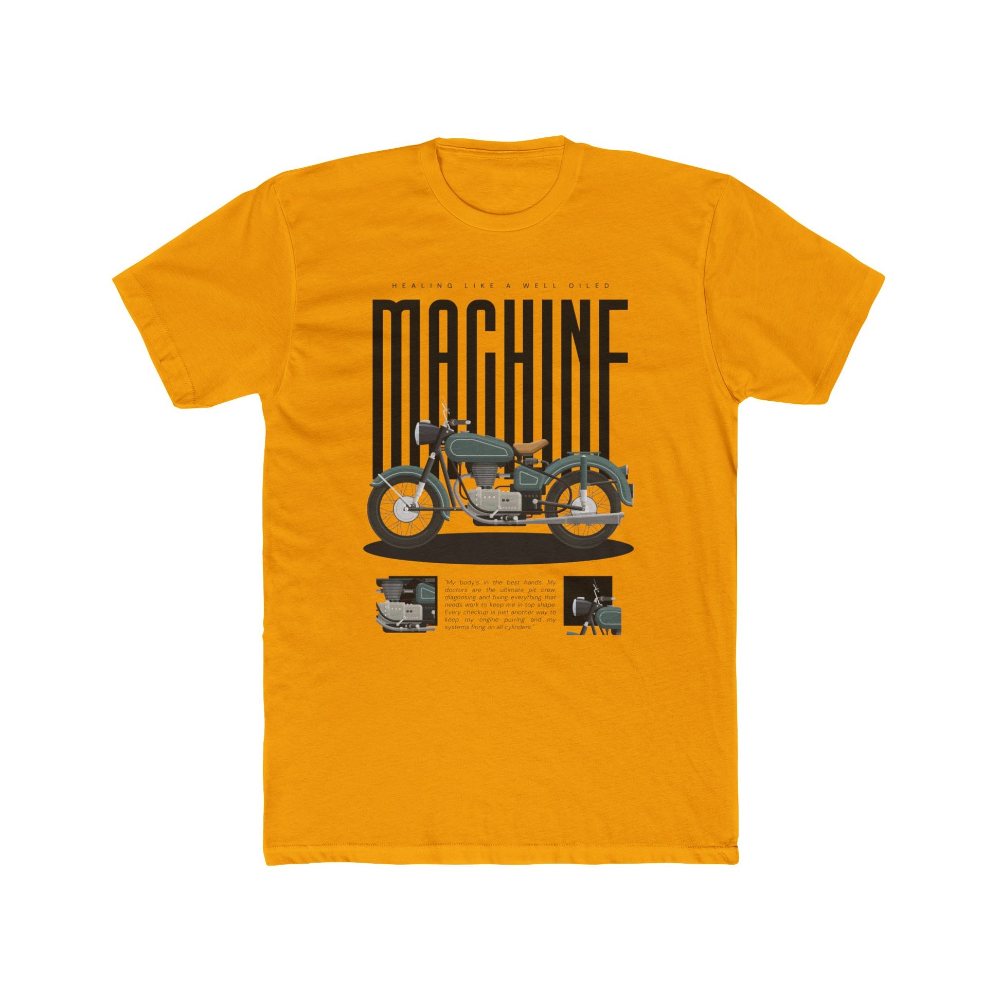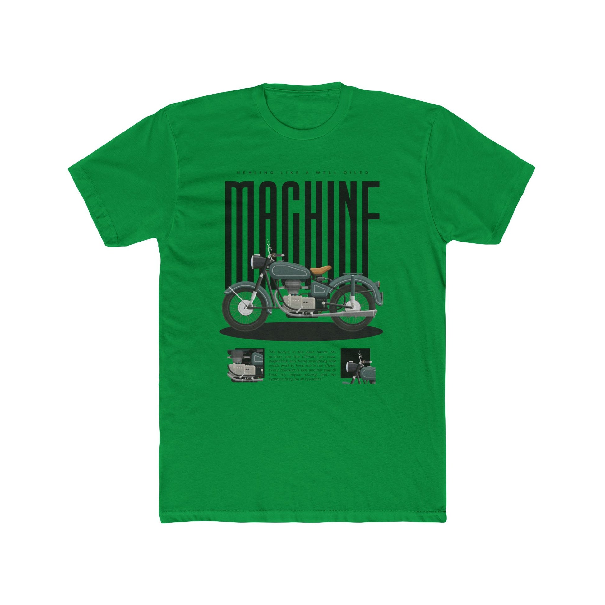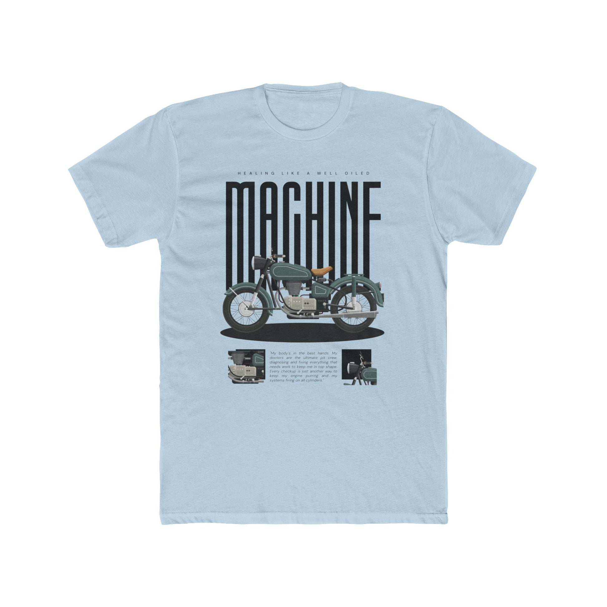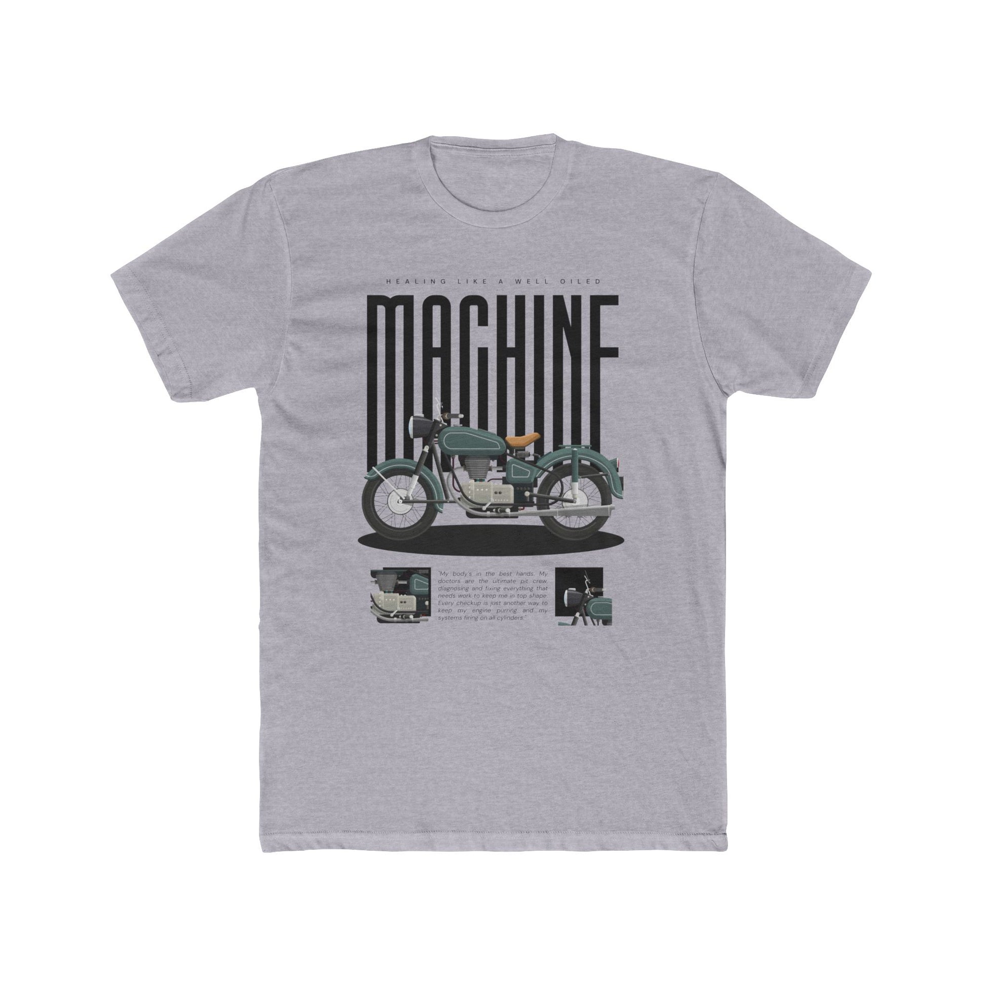 “Heal Like a Well-Oiled Machine” speaks to the men who love vintage bikes, turning wrenches, and running diagnostics on their own bodies. Because even when the engine’s stalling, you're still in the garage—getting it done.