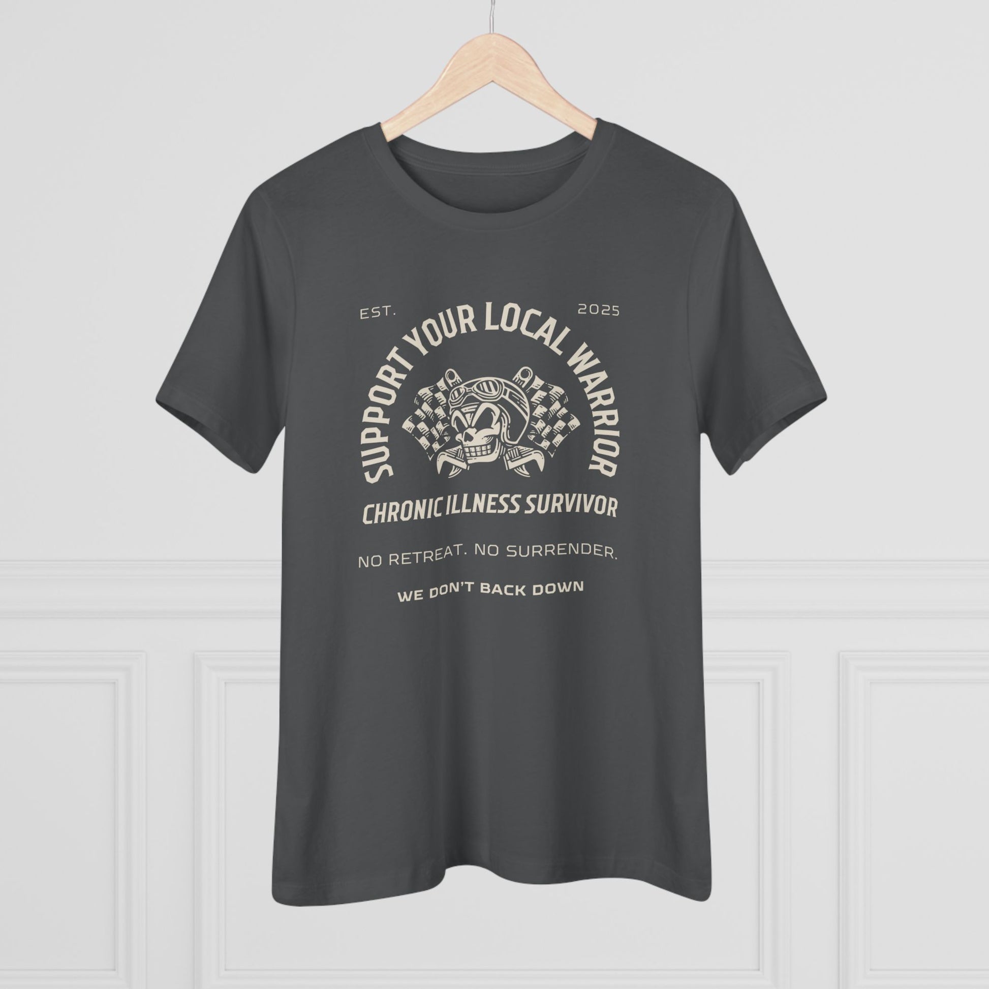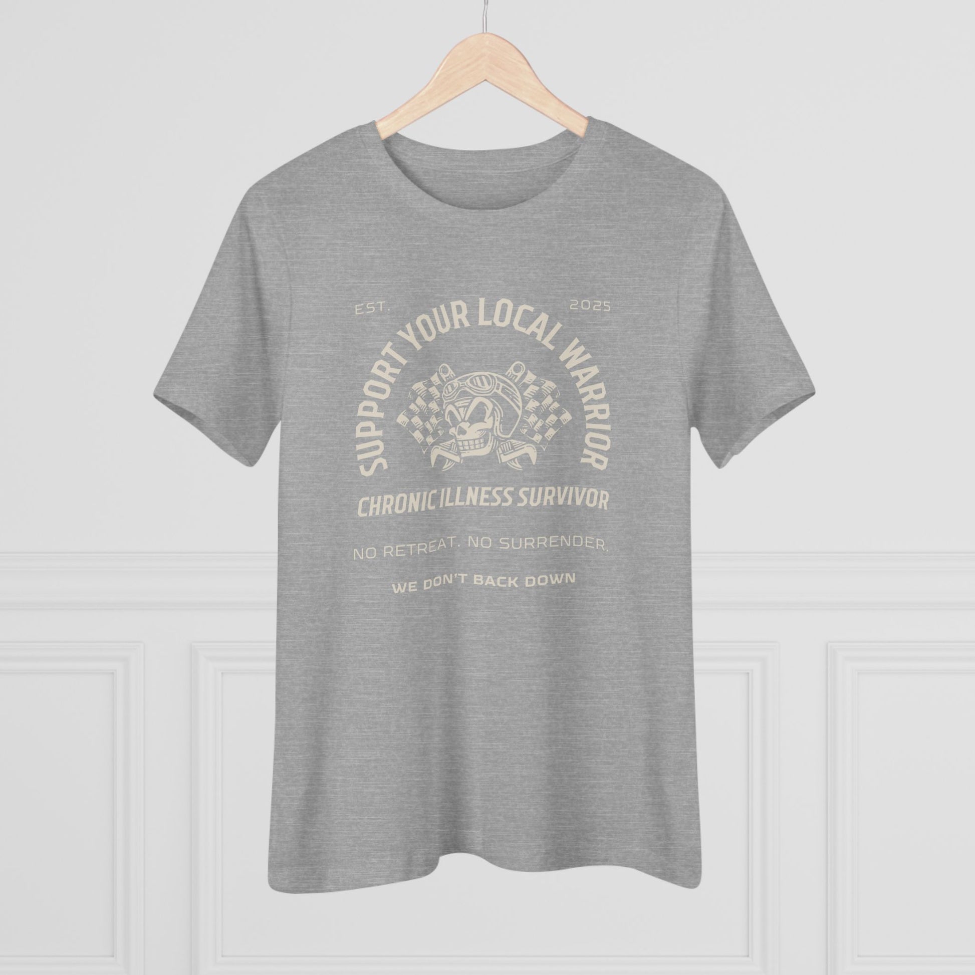 Whether it’s someone living with chronic illness, asthma, autoimmune conditions, or neurodivergence—this shirt is a call to stand with them. “Support Your Local Warrior” is more than a message, it’s a movement of empathy, strength, and solidarity. Because warriors don’t always wear armor—sometimes they wear oxygen tubes, are hooked up to IVs, or have a quiet smile.